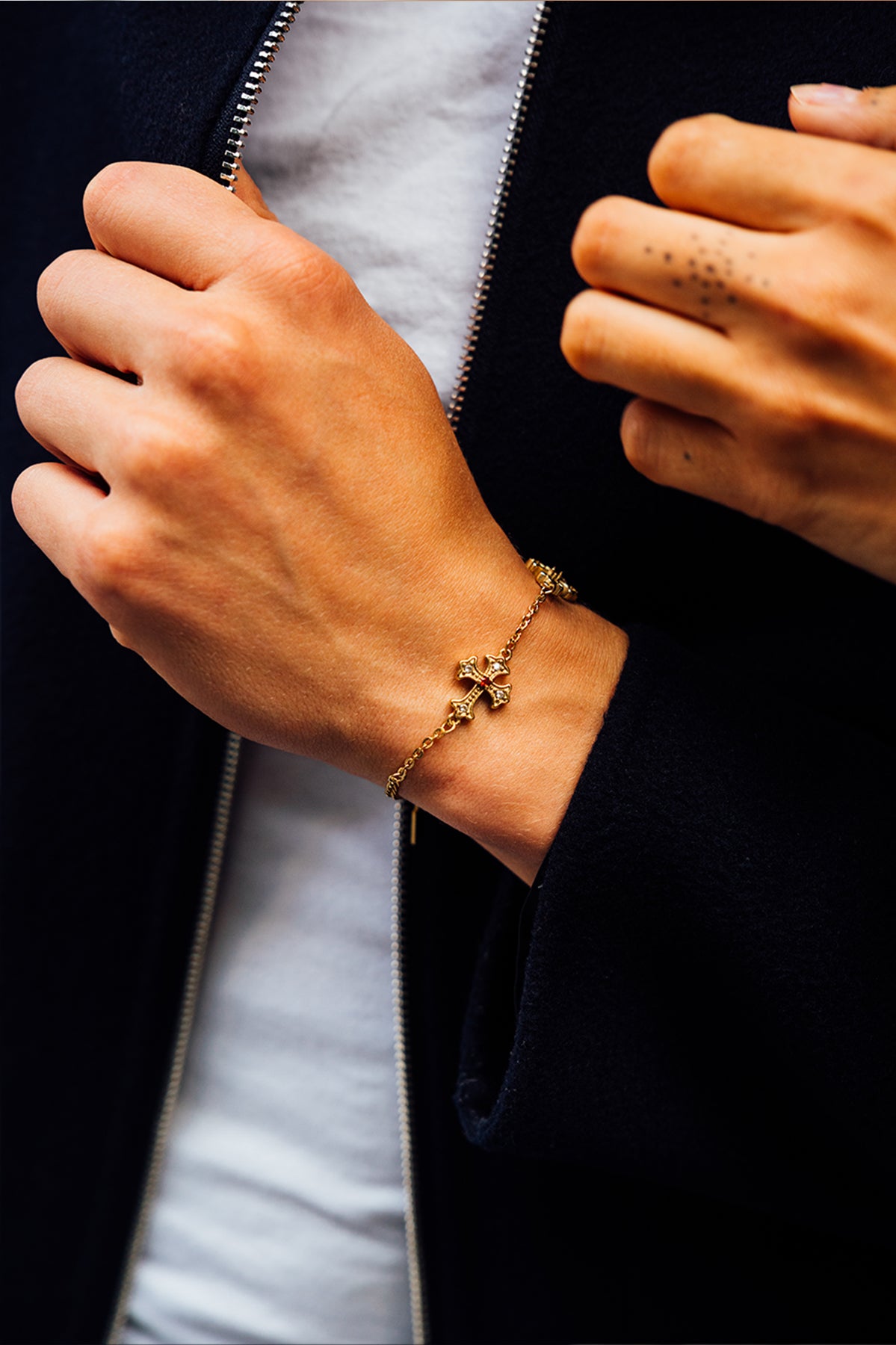 Premium materials crafted for everyday wear. Waterproof, non-tarnish, and hypoallergenic. The 14k Gold plating retains a rich, authentic gold tone, while the 316L Stainless Steel core ensures lasting strength and shine. Luxury quality made to live in, not take off.