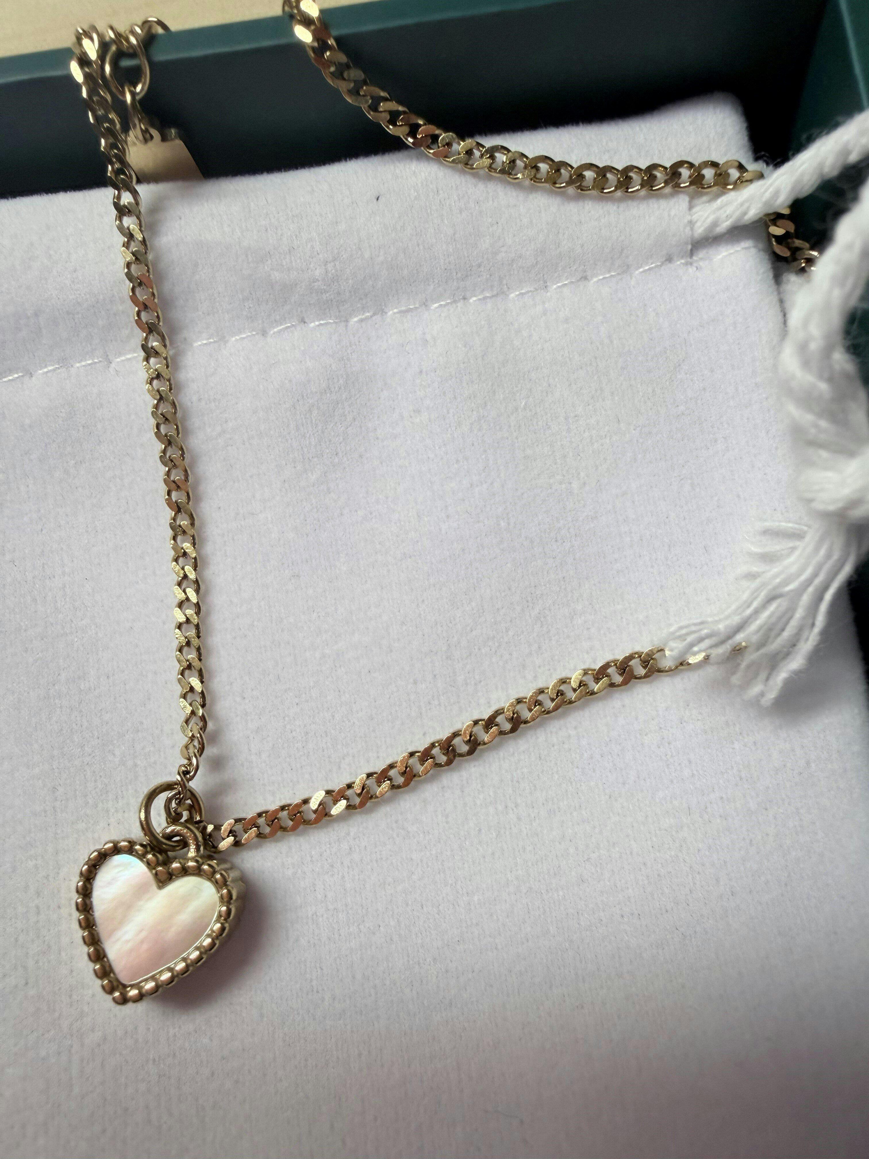 Handcrafted with a Mother of Pearl Heart Pendant, a 14k Gold classy necklace.